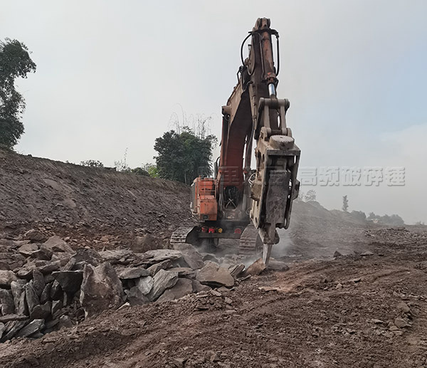 采用目前高頻破碎錘中的三疊加8軸聯(lián)動的振動箱技術,適配于50T-100T的挖掘機,可突破石灰?guī)r等整體性較強的巖體。
