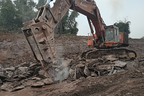 3、破碎錘破碎作業時,切勿使用破碎錘挪動/撬動石塊,這樣很容易造成破碎錘鋼釬斷裂,支架損壞。當鋼釬插在石塊中時,挖掘機切勿行走或擺動大小臂!